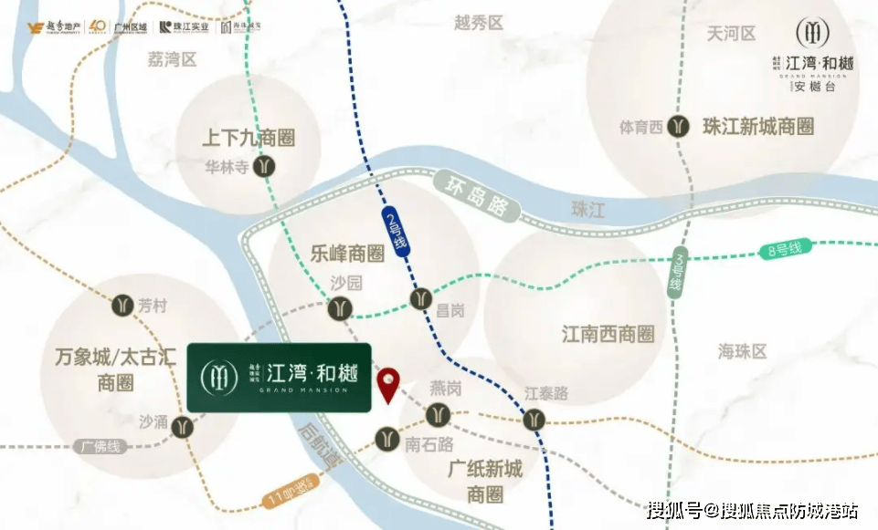 地段,永远是房地产价值的核心逻辑。江湾和樾坐落于海珠区工业大道南昌岗西路,这里是老海珠的核心腹地,也是近年来城市更新的重点区域。项目紧邻珠江后航道,直线米,这种“亲水而不涉水”的距离,既保证了居住的宁静与安全,又让南向一线江景成为了家中的日常风景。在海珠西板块,能够拥有如此纯粹南向望江资源的住宅项目,可谓是凤毛麟角。交通出行方面,江湾和樾展现了惊人的通达性,真正实现了“出门即地铁,上车通全城”的便捷生活。项目步行约800米即可到达地铁8号线号线是广州东西向的交通大动脉,向西连接荔湾,向东贯穿海珠,直达琶洲会展中心。居住在江湾和樾,乘坐8号线仅需几站即可到达昌岗商圈,享受成熟的商业配套;继续向东,可快速抵达客村、磨碟沙,进而到达琶洲互联网集聚区,对于在琶洲、珠江新城工作的精英人士来说,通勤时间完全可控。